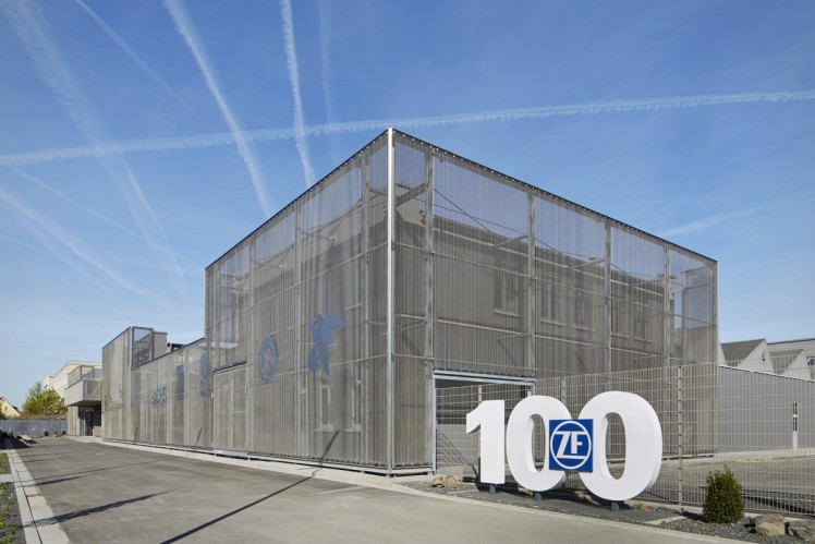 Charakteristisch für die Außenfassade ist die Stahlkonstruktion mit den historischen SACHS-Logos