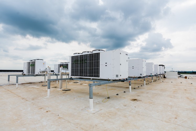 Blick auf den äußeren Teil der Wärmepumpen auf dem Dach von Werk 2 in Pančevo.