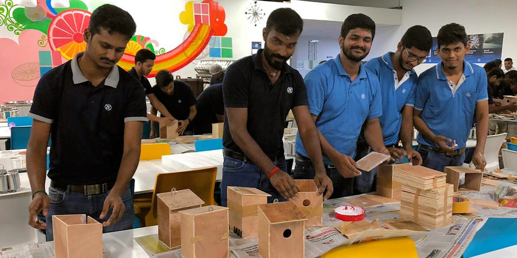 Doch auch außerhalb der ZF-Mauern hat das Go Green Team bereits einige Kampagnen durchgeführt oder beteiligt sich noch immer an ihnen. Gesponsert vom Unternehmen beteiligt sich das ZF Go Green Team an vier Kampagnen. Die Größte von ihnen ist die landesweite „One Million Trees Campaign“, bei der es darum geht, zur Aufforstung des Landes eine Million Bäume zu pflanzen. Bislang brachte das Team etwa 300.000 Setzlinge aus. Home Composting, das Kompostieren zuhause, ist ein weiteres Projekt, von dem die Gesellschaft und die Umwelt profitieren. Kompostiert wird dabei in einem einfachen Komposter, dessen Basis eine Plastikmülltonne mit Deckel ist. Wie’s funktioniert, erklären die Freiwilligen des ZF Go Green Teams. Dies leistet auch einen Beitrag zum Verkleinern der Abfallberge. Für mehr Artenvielfalt soll eine weitere Kampagne sorgen: Es geht darum, den Sperling zu schützen, dessen Verbreitung auch in Indien abnimmt. Dazu haben ZF-Mitarbeiter aus Coimbatore und deren Familien bis heute mehr als 5000 Brutkästen aus Holzabfällen gebaut und verteilt.