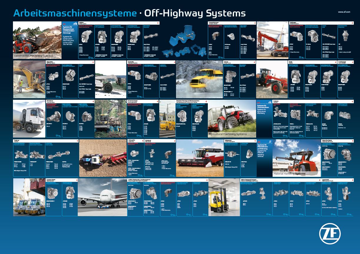 Für weitere Informationen rund um das umfangreiche Portfolio sowie die Produkte von ZF im Bereich Baumaschinen stehen folgende Broschüren und Flyer für Sie zum Download bereit.