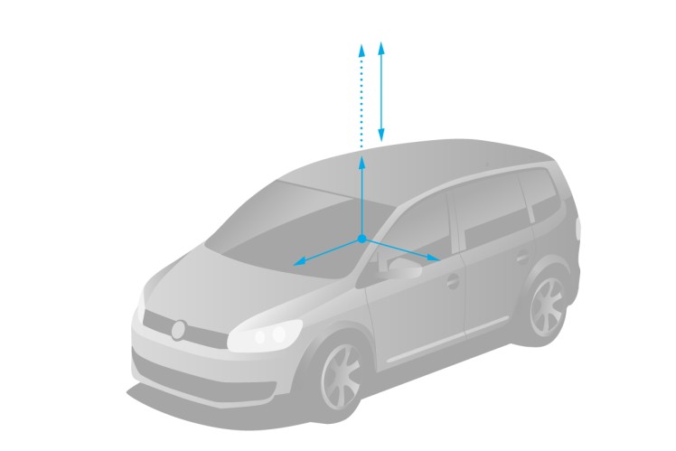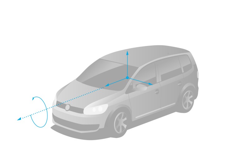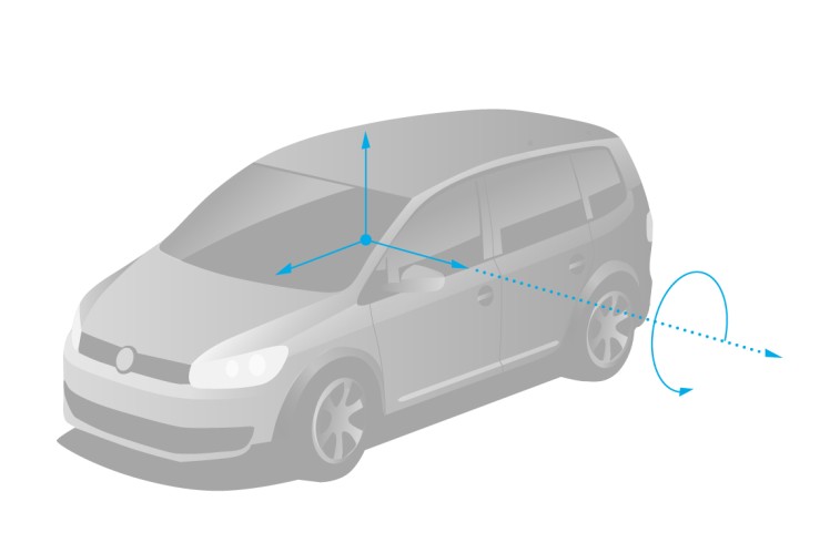 A damping system has to deal with a lot of situations. Uneven tracks inevitably lead to direct impact, which is cushioned by the suspension. If a wheel rolls over an obstacle, it lifts, compressing a spring between the steering knuckle and the car body. Then the spring decompresses. The damper's job is to attenuate the resulting vibration as quickly as possible. Aside from direct impact, vehicles have to contend with motive forces, braking forces and centrifugal forces. These forces associated with driving dynamics can prompt the car body to move in the direction of three spatial axes (see diagram below). The challenge lies in the fact that different driving situations each demand a specific damping force. Minimizing body movement on curves requires high damping force. Driving over slightly uneven surfaces only requires a little. And safe contact between the tires and the ground requires moderate damping force. “A conventional damper can only ever reach a compromise between sporty and comfortable, albeit a good compromise,” says Dr. Christoph Elbers, Head of Engineering Vehicle Motion Control at ZF.