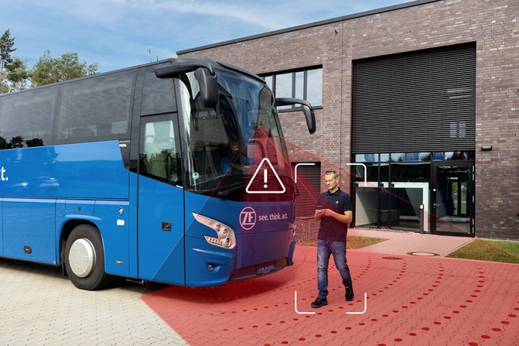 ZF developed City Bus CMS, a collision mitigation system, to better protect unsecured bus passengers from injury during braking maneuver. It is the industry’s first OE-independent Collision Mitigation System tailored to city bus applications. It represents a major step in enhancing bus safety. The system reacts to vehicles as well as bicycles and pedestrians. During a braking maneuver, the CMS system initially applies a jerk brake with a strong gradient but limited intensity. A stronger partial braking is only applied after approximately one second. This alerts passengers and gives them time to grab a handhold or take other securing actions. It helps better protect unsecured bus passengers during braking maneuvers.