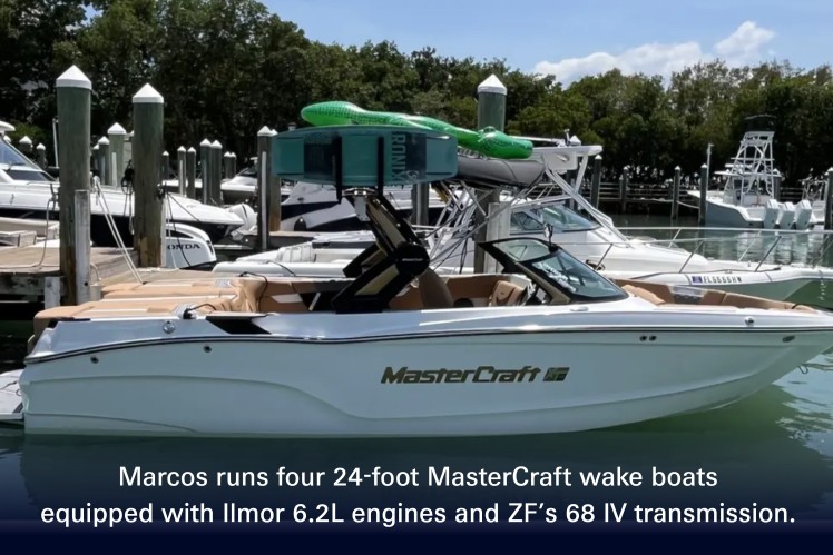 Marcos now runs four 24-foot MasterCraft wake boats equipped with Ilmor 6.2L engines and ZF’s 68 IV transmission for the school’s wakeboarding lessons. It’s a combo he describes as “the best.”