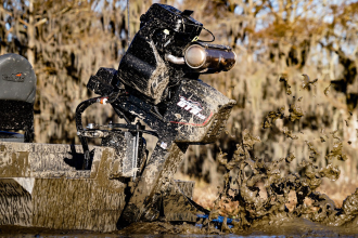 The new Gator Tail GT-Z air-cooled outboard incorporates a first-of-its-kind, robust transmission to ensure continuous propulsion in harsh, extreme conditions.